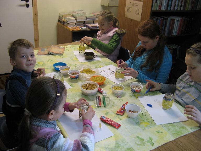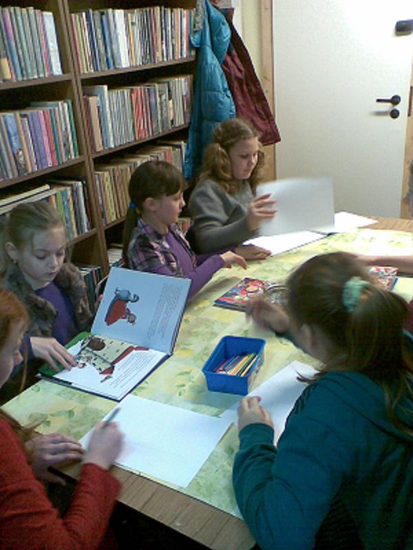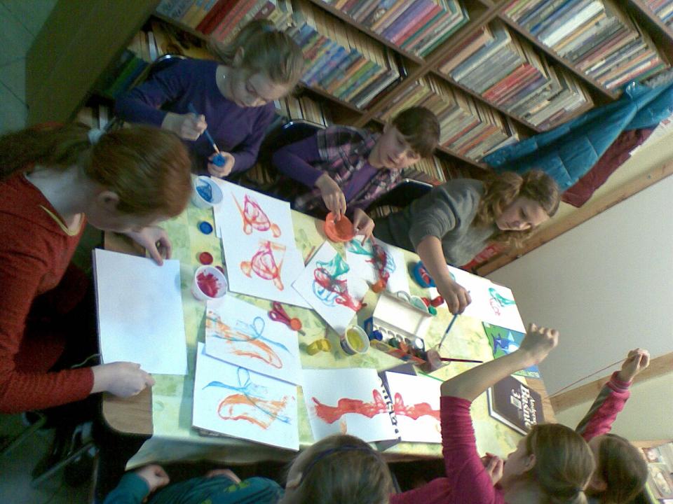 rysowali ilustracje. Biblioteka zorganizowała również zajęcia plastyczne m. in.
